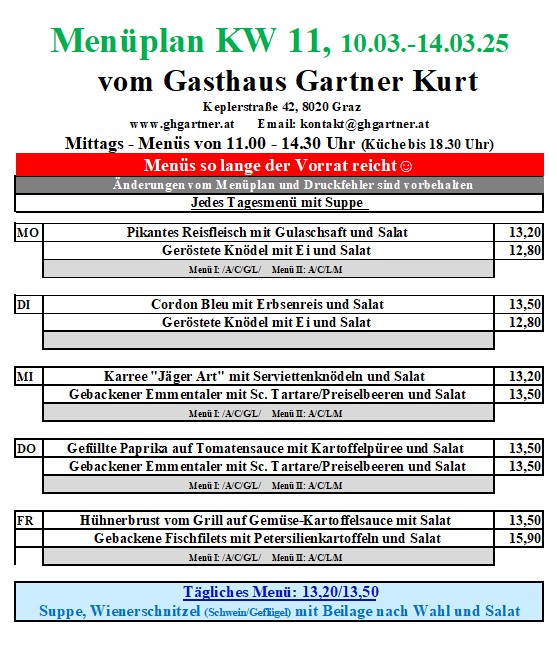 Mittagsmenüs