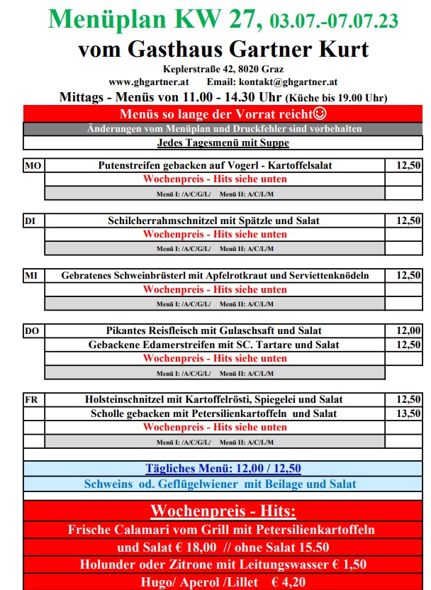 Speisekarte