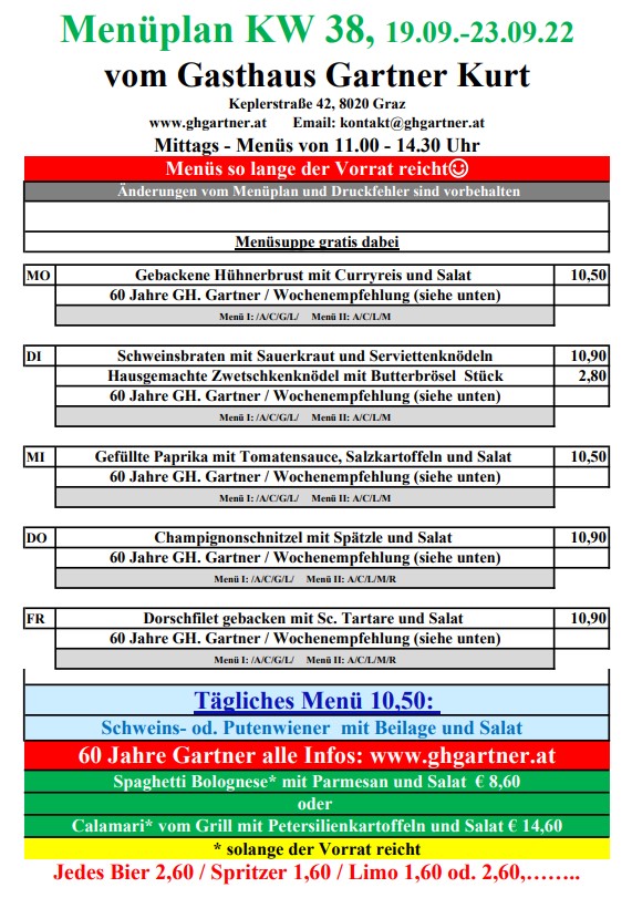 • Speisekarte