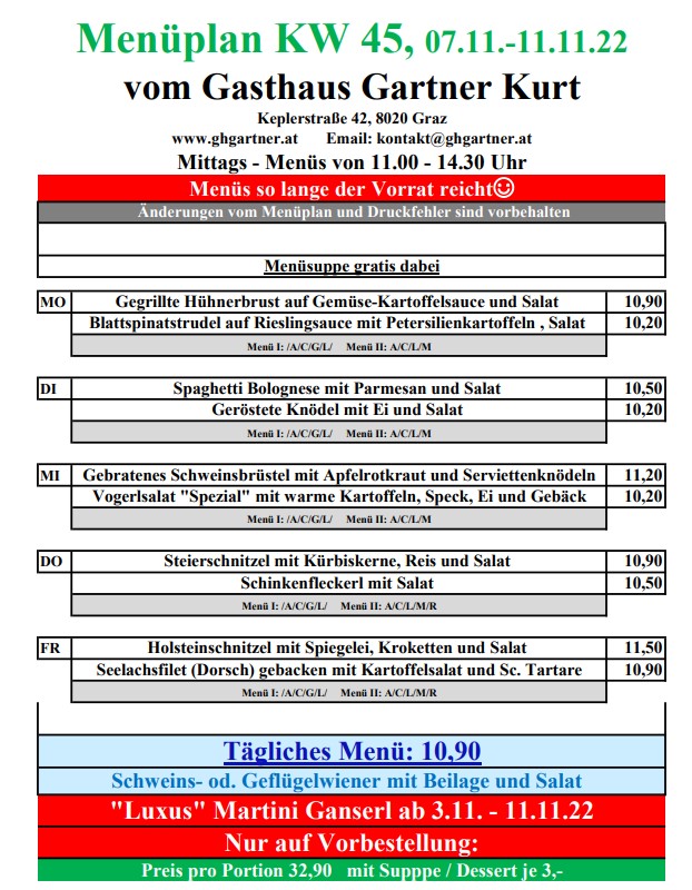 Mittagsmenüs