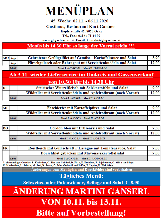 • Speisekarte