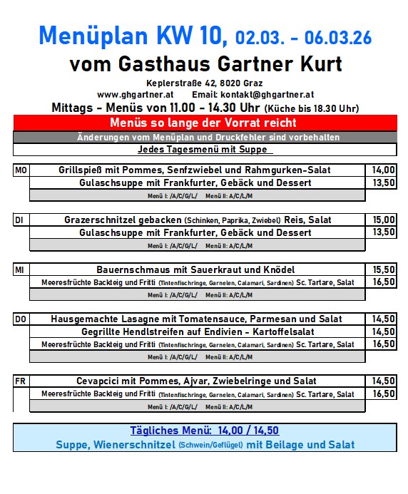 Mittagsmenüs KW 10, 02.03.-06.03.26