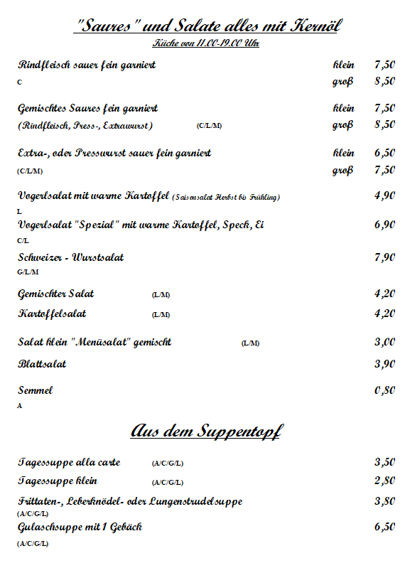 Speisekarte